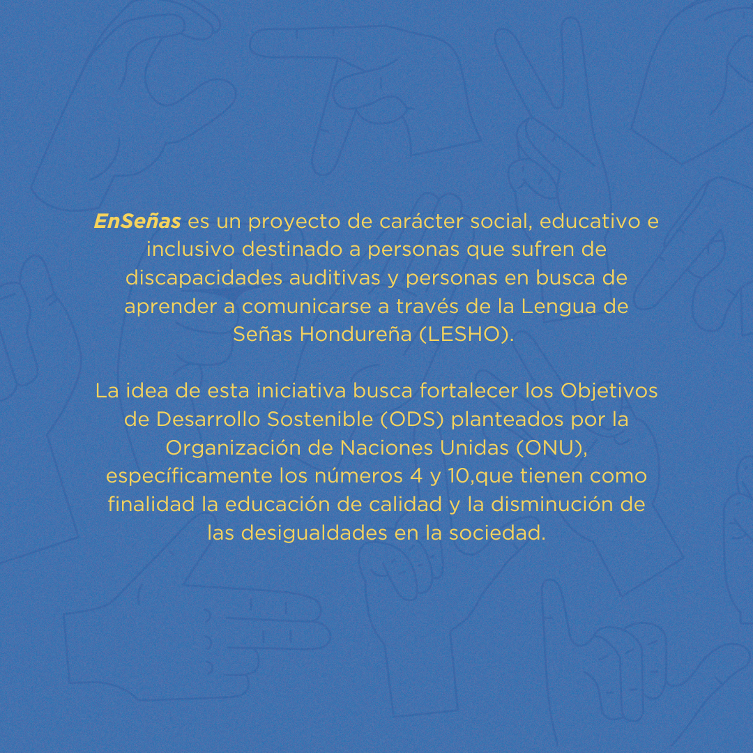 EnSeñas es un concepto de fichas mnemotécnicas destinado a las personas que sufren de discapacidades auditivas y personas que desean aprender a comunicarse a través de la Lengua de Señas Hondureña (LESHO).
